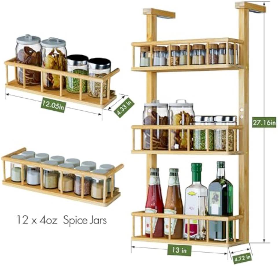 Étagère à épices suspendue en bambou pour cuisine, 3 niveaux, organisateur de rangement pour épices et conserves, à fixer sur le côté du réfrigérateur