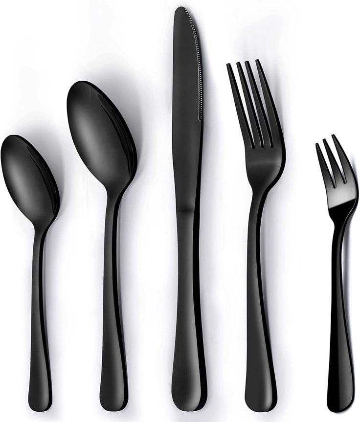 Kitchen Black Metal Silverware Cutlery 5 Pcs Gold Dinner Knife Spoon Fork Flatware Set Stainless Steel