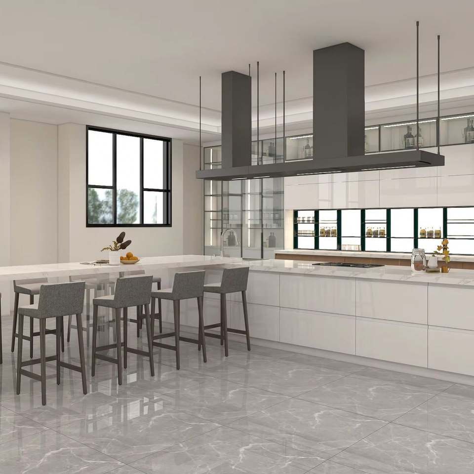 Armoires de cuisine complètes avec îlot central, grand rangement et évier prêt à l'emploi