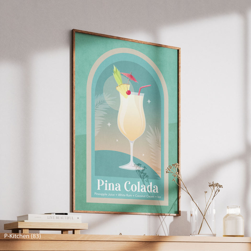 Impression sur toile pour cuisine, illustration artistique de cocktail tropical Pina Colada, décoration murale moderne sur le thème des boissons