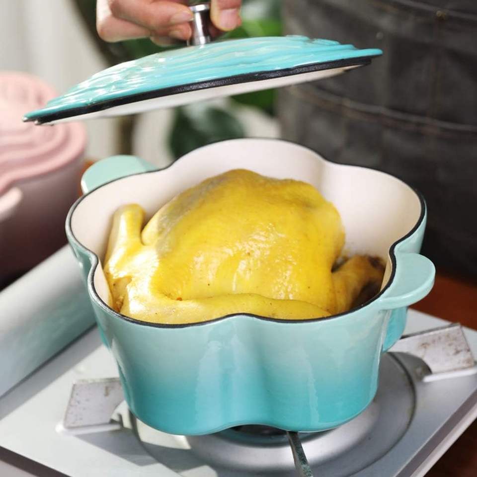 Casserole de cuisine Casserole de cuisine Casserole de fleurs colorées en fonte Cocotte