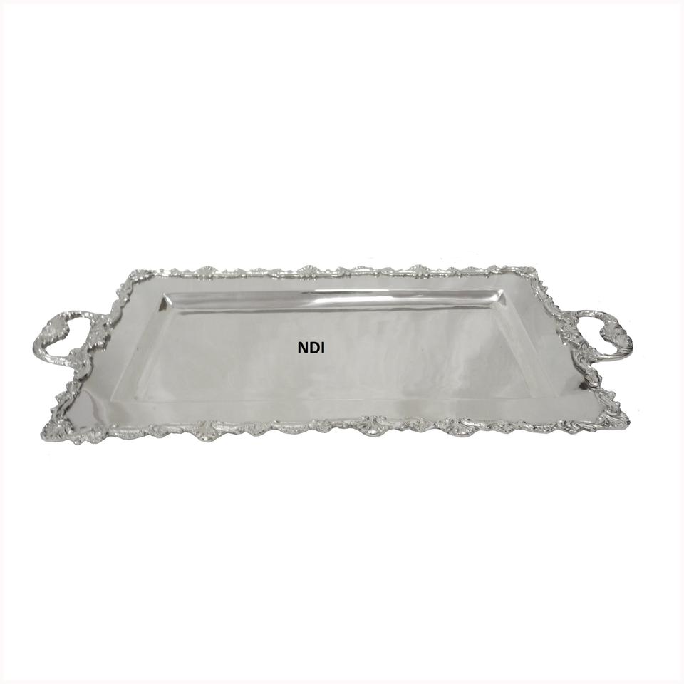 Style moderne bordure en relief vaisselle décoration de table plateau de service en métal cuisine traiteur utilisé petit déjeuner plateau de serveur de nourriture