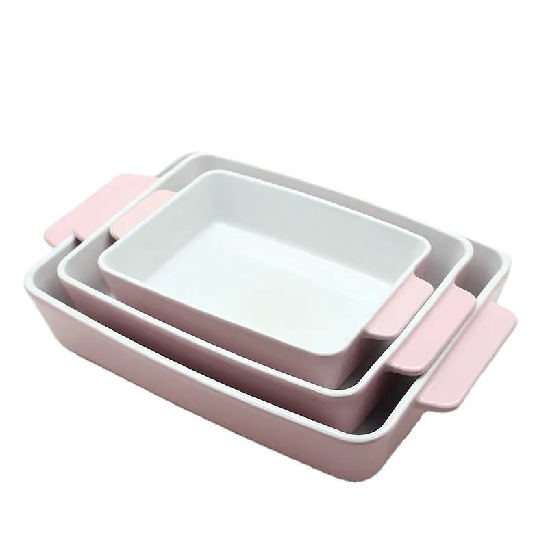 Different size custom made ceramic baking pans with handle
