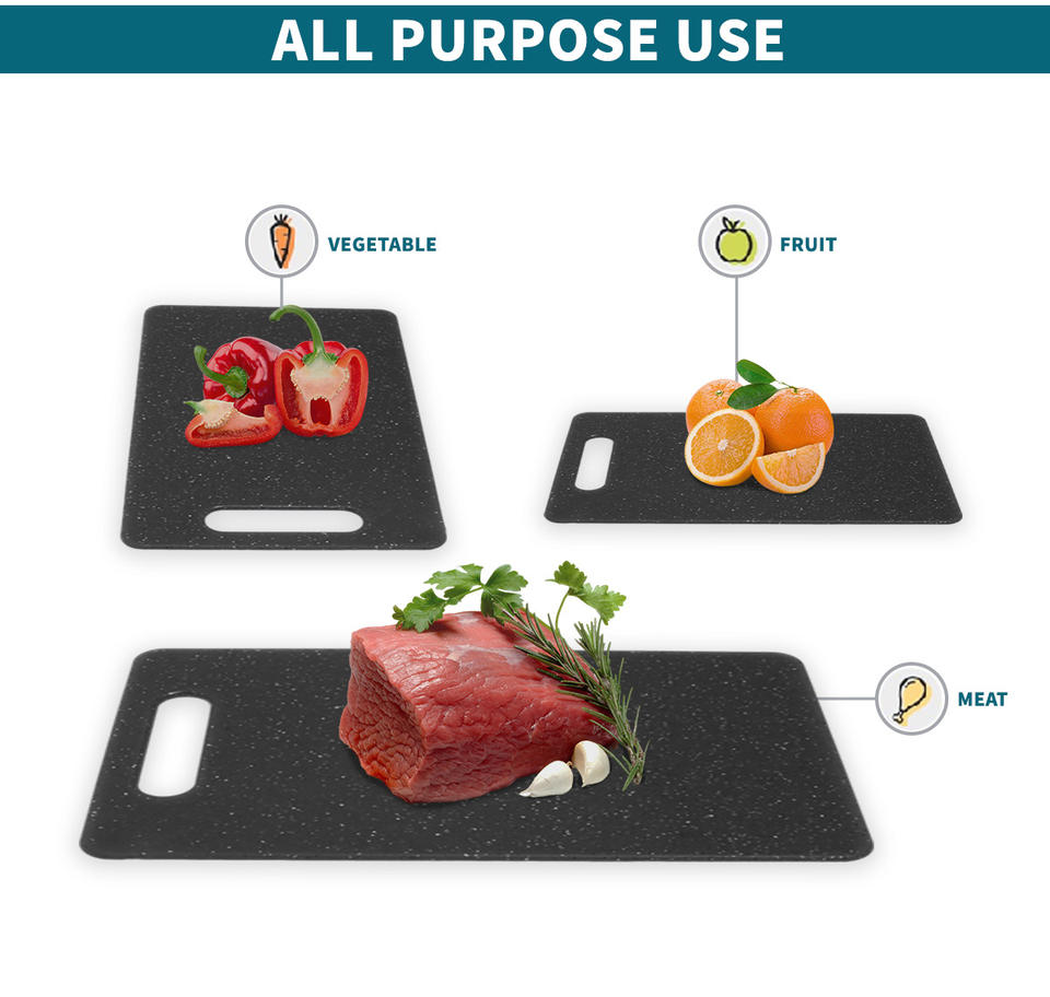 Planche à découper en plastique Texture de marbre PP pour poulet de cuisine Planche à découper en granit antibactérien contre la moisissure 3 pièces