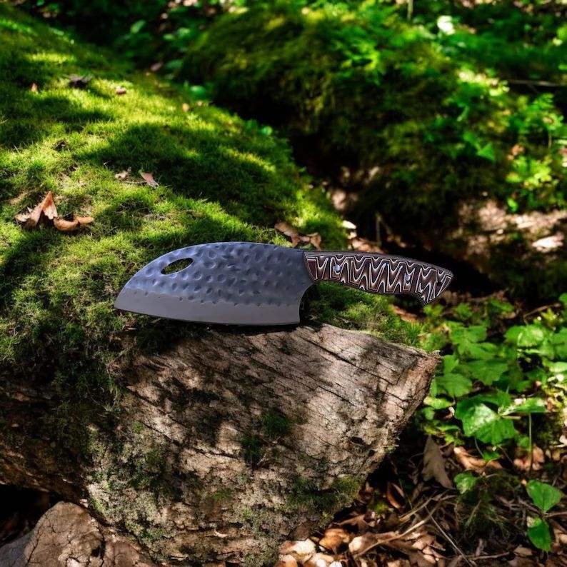 Couteau de cuisine avec étui en cuir, couteau de chef utilitaire, hachoir, couteau de chef de luxe fait à la main, manche en micarta, forgé à la main