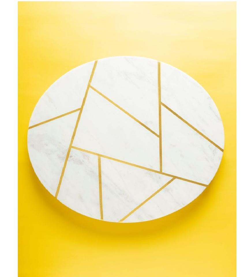 Planche à découper ronde en marbre blanc avec logo personnalisé pour la cuisine