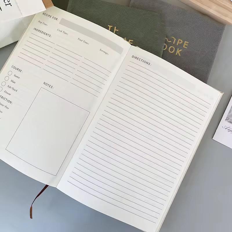 Carnet de recettes de cuisine A5 à couverture rigide en stock – Personnalisation acceptée