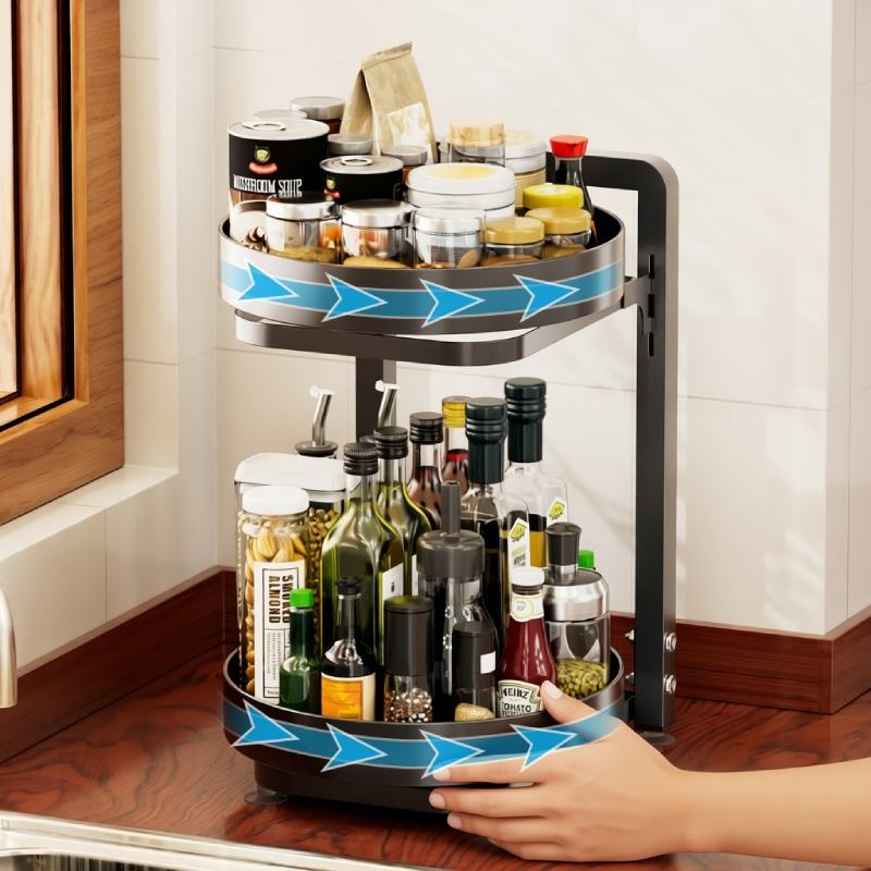 Support de Rangement Rotatif à 360 Degrés pour Épices et Condiments, Organisateur de Bouteilles d'Assaisonnement Circulaire pour Coin de Comptoir de Cuisine