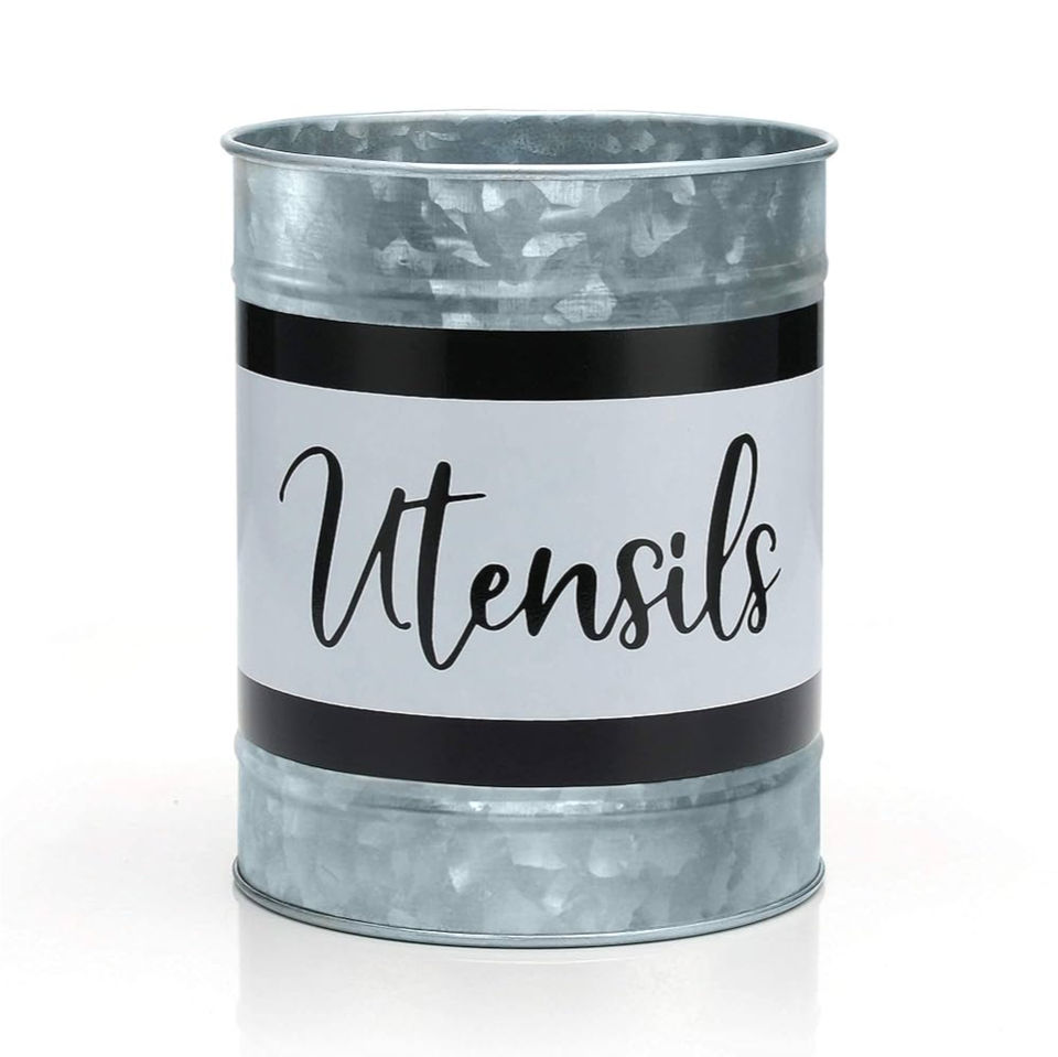 Organisateur de comptoir de cuisine vintage en métal galvanisé avec poignée en bois, porte-ustensiles pour fournitures de fête
