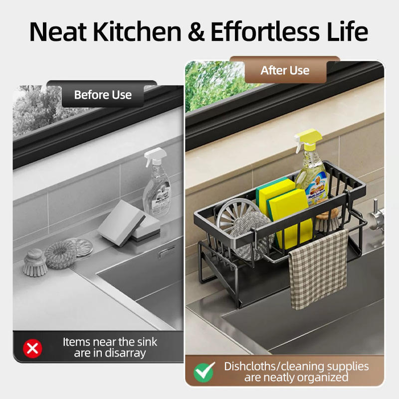 Organisateur d'outils de nettoyage pour comptoir de cuisine, support robuste antirouille pour éponge et brosse à poser près de l'évier