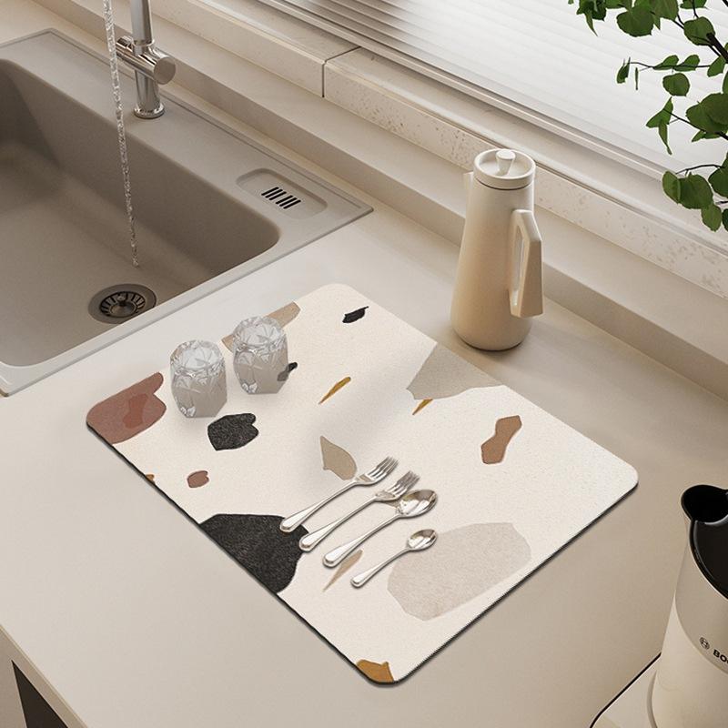 Tapis de drainage pour comptoir de cuisine, rectangulaire, 30x40cm, 40x60cm, antidérapant, absorbant, en fibre de polyester, motif abstrait