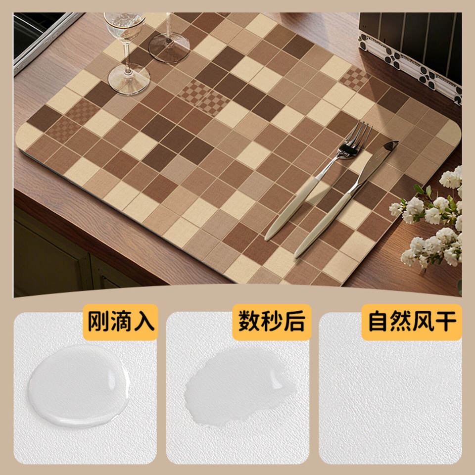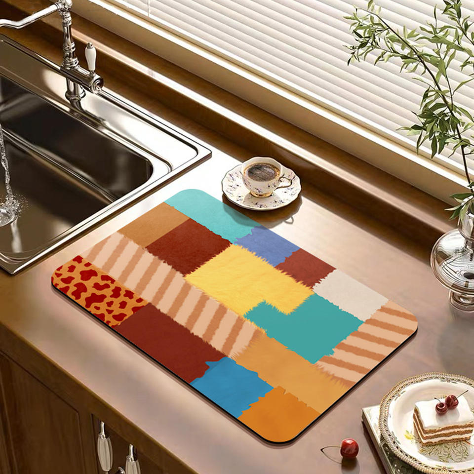 Tapis de drainage pour comptoir de cuisine, motif patchwork rectangulaire, antidérapant, en fibre de polyester, séchage rapide, absorbant, pour l'aire de lavage