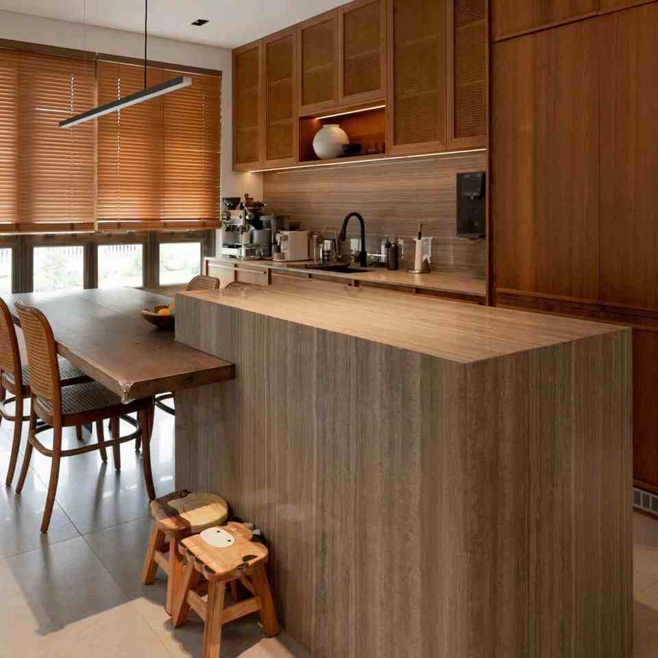 Ensemble d'armoires de cuisine, table rétractable, meubles sur mesure, support de taille avec tiroirs, îlot de cuisine avec chaises