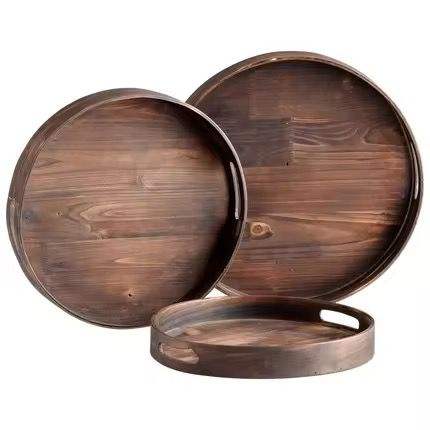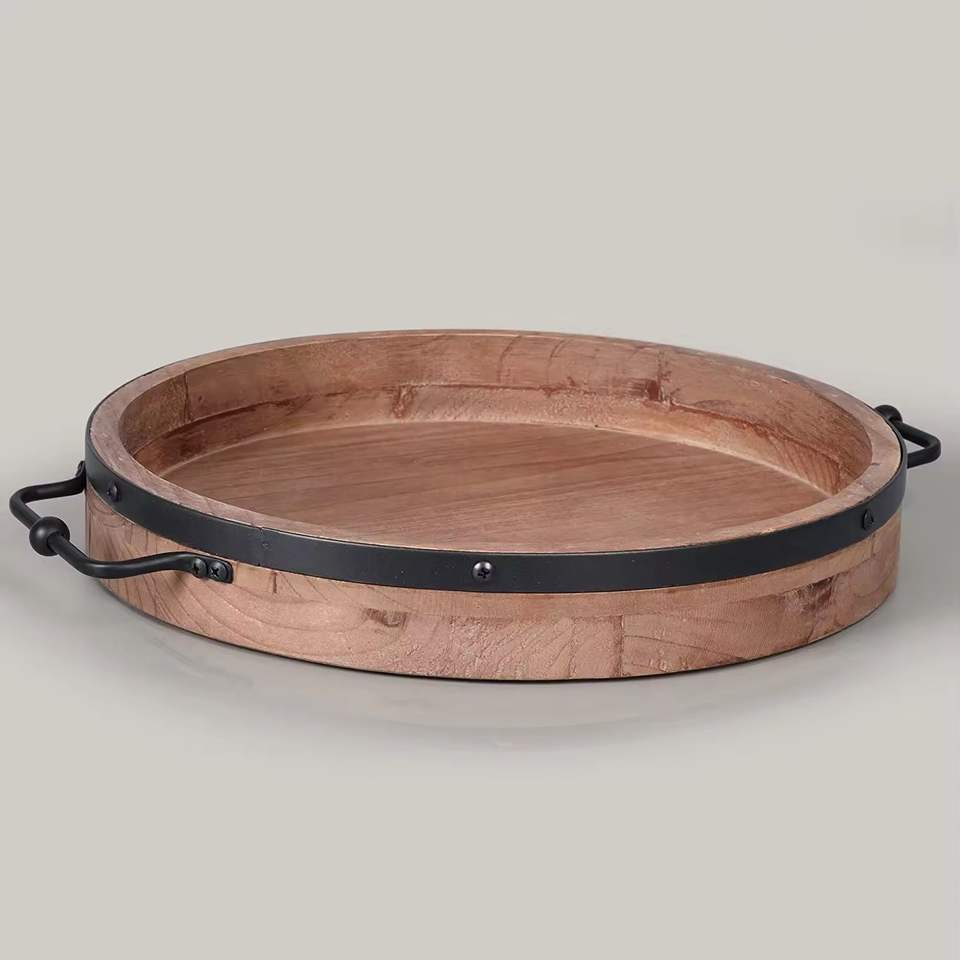 Plateau de service en bois rustique vintage artisanal avec poignée en métal et fer Plateau rond en bois