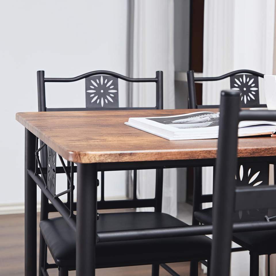 Sets de table de cuisine pour 4, 5 pièces en métal et bois rectangulaire coin petit-déjeuner, coin repas avec chaises