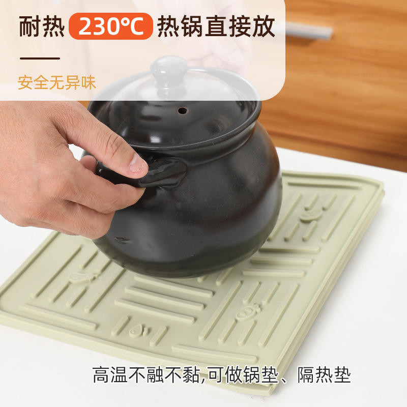 Kitchen Drain Mat Rectangle Food Grade Silicone Non Slip Waterproof Countertop Mat For Vegetable Fruit Drying