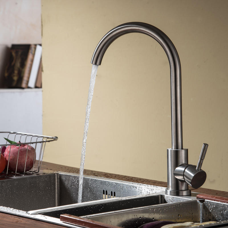 Robinet de cuisine en acier inoxydable 304, monocommande, rotation à 360 degrés, montage sur plan, style moderne, avec cartouche céramique