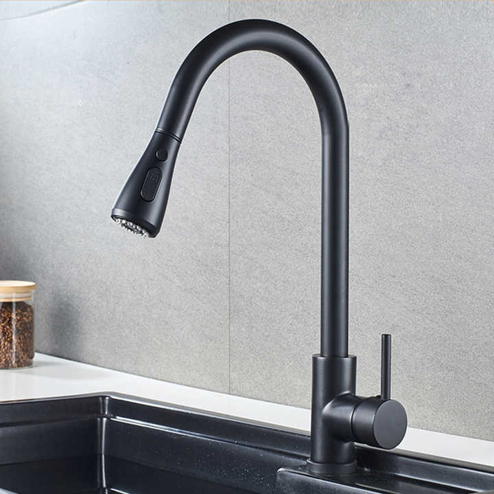 Robinet mitigeur de cuisine à trou unique, de couleur noire, avec bec unique, pour l'évier