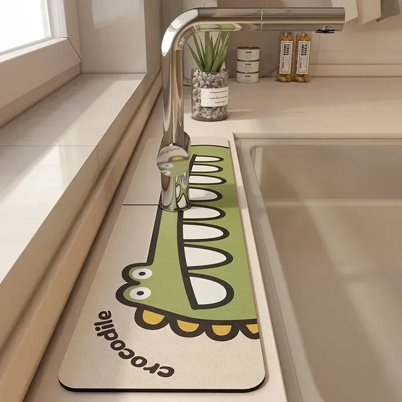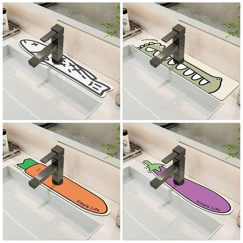 Tapis de protection imprimé pour robinet de cuisine, tapis de lavabo de salle de bain super absorbant, coussin de drainage antidérapant, protection anti-éclaboussures pour robinet, tapis de séchage pour comptoir