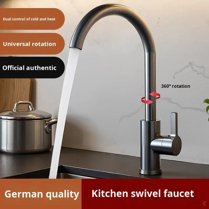 Robinet de cuisine en acier inoxydable, poignée unique, pression accrue, anti-éclaboussures, eau chaude et froide, rotatif pour laver les légumes et la vaisselle