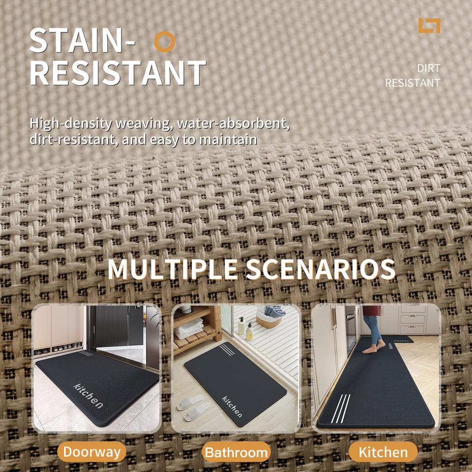 Tapis de sol de cuisine en fibre de polyester, antidérapant, absorbant l'eau, résistant à l'huile, aux taches, lavable, rectangulaire, couleur unie, paillasson