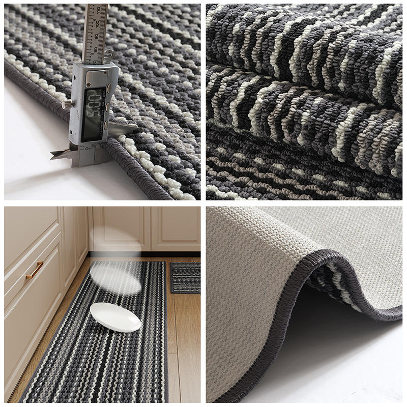 Tapis de cuisine rayé rectangulaire antidérapant en polypropylène gris foncé absorbant l'eau pour cuisine