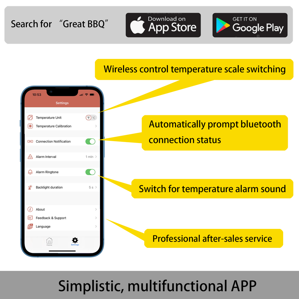 Thermomètres de cuisson pour barbecue sans fil Bluetooth Mobile BBQ Thermomètre à viande pour four de fumoir