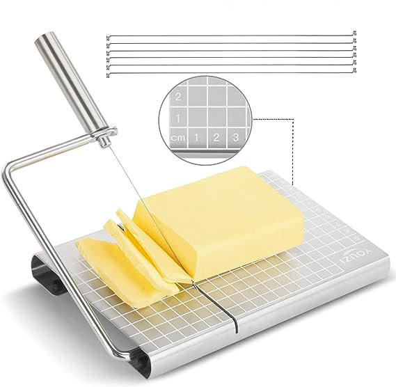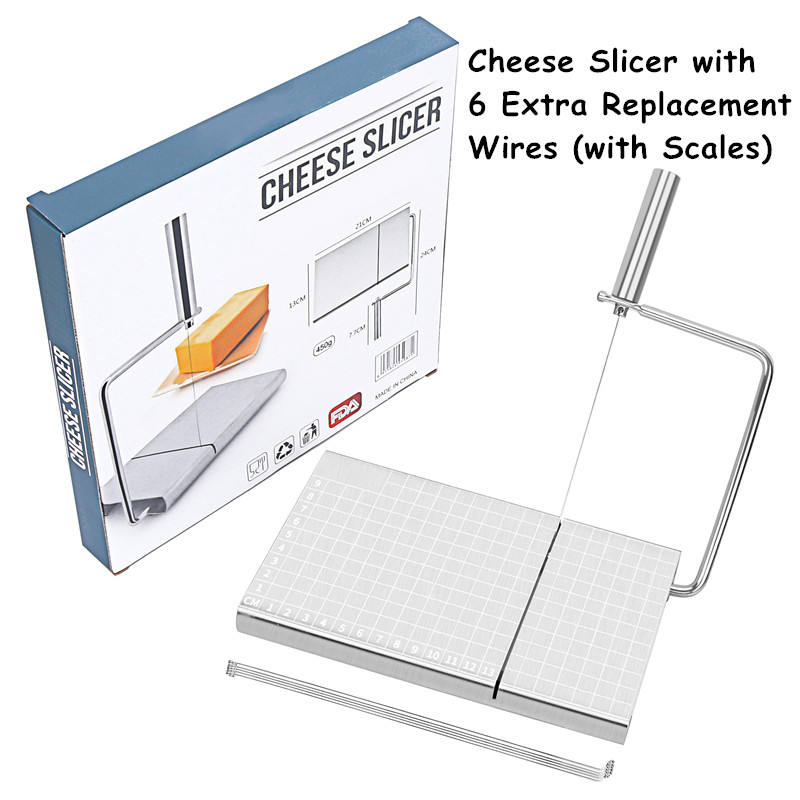 Gadget de cuisine : Trancheuse et coupe-fromage à beurre avec 6 fils de rechange supplémentaires et échelle de taille précise sur la planche à découper