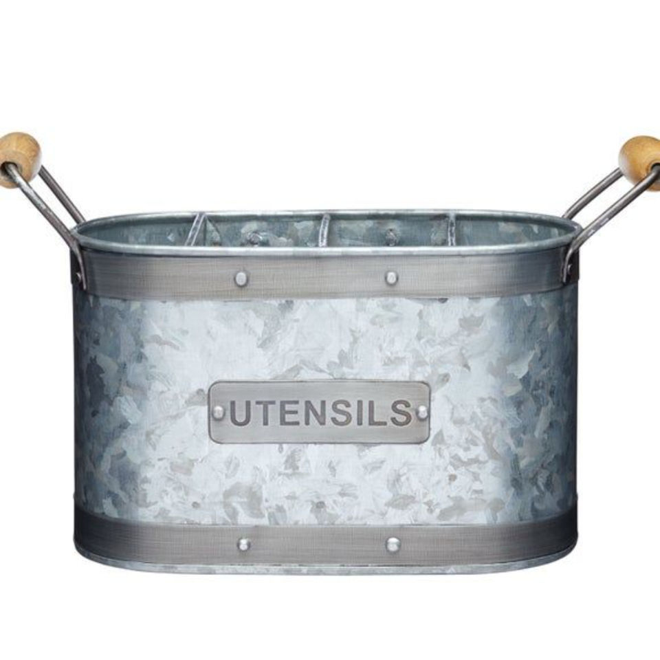Porte-ustensiles de cuisine en acier galvanisé, organiseur d'ustensiles en métal de qualité supérieure avec poignées en bois, 4 compartiments, meilleur prix