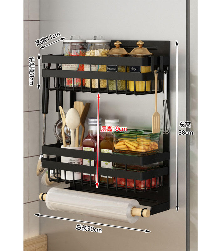 Étagère de rangement murale pour cuisine, support à épices avec porte-serviettes en papier, support magnétique à épices pour réfrigérateur