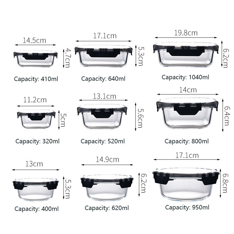Nom du produit:Ensemble en verre de récipient de stockage de nourriture