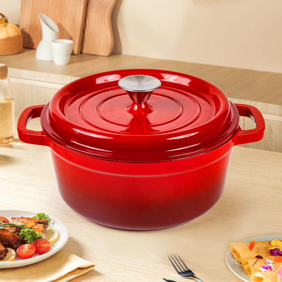 Marmite émaillée en fonte de 3L 3,5 L 5L avec poignée pour restaurant, faitout émaillé pour four hollandais