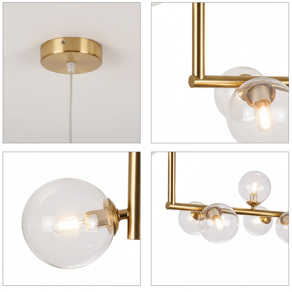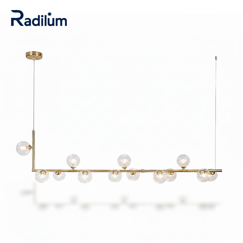 Luminaire pour îlot de cuisine Lustre linéaire moderne du milieu du siècle Globes en verre clair en laiton G9 pour table à manger Lampe CE UL Custom Air 73