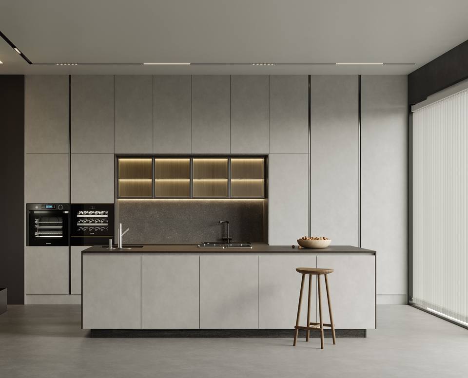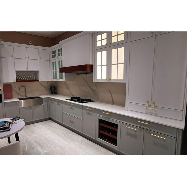 Ensemble d'îlots de cuisine Armoires de cuisine de luxe en bois massif au design moderne Dalle de pierre frittée pour porte de meuble de cuisine
