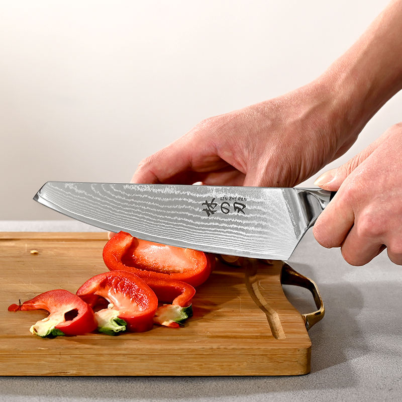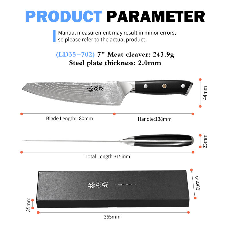 Couteau de cuisine couperet à viande 7 pouces en acier damas couteau à découper japonais avec manche G10 67 couches couteau de coupe en acier damas