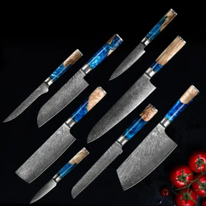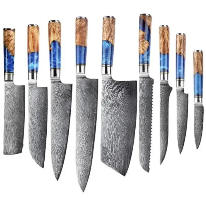 Ensemble de couteaux de cuisine en acier inoxydable, ensemble de couteaux de chef professionnels avec lame tranchante et manche en acier