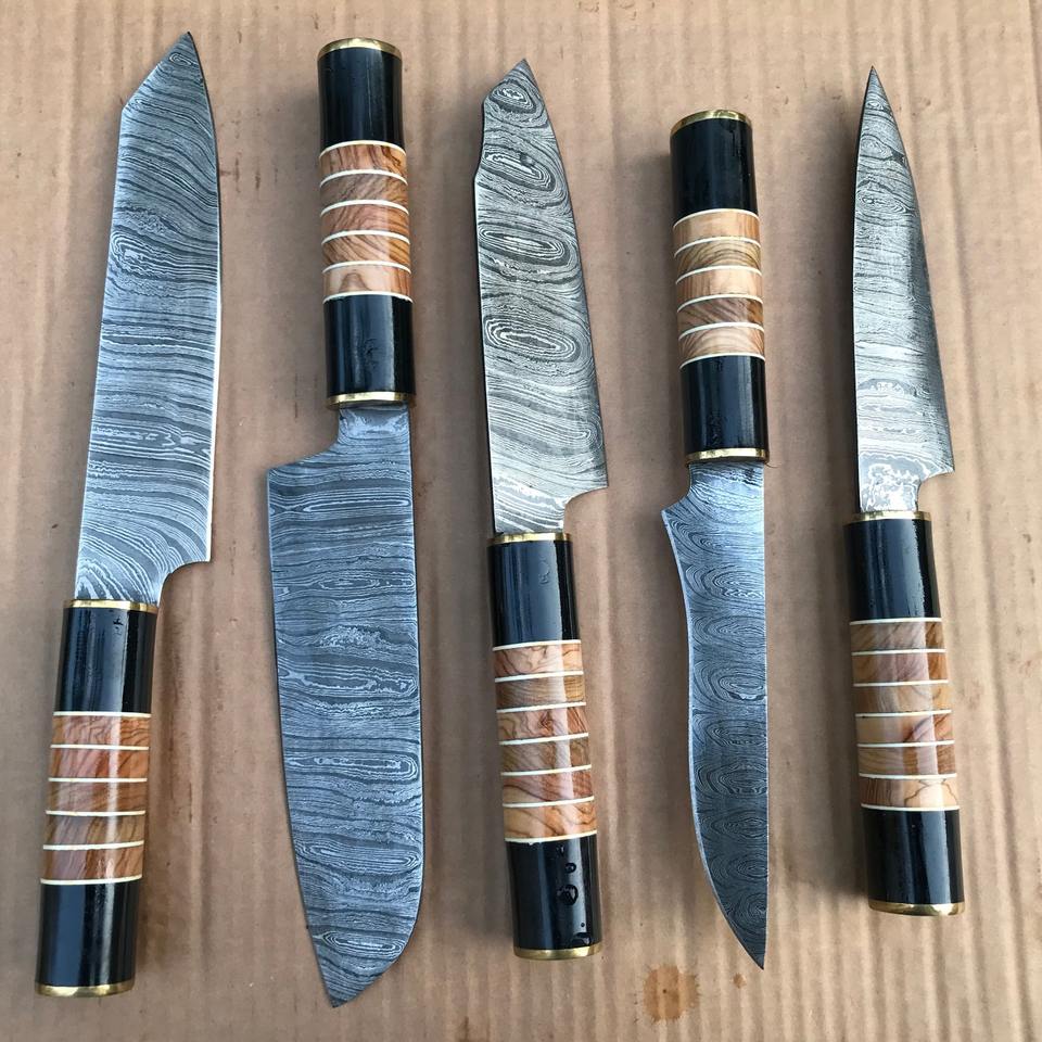 Ensemble de couteaux de cuisine et de chef en acier Damas, usage professionnel, qualité garantie, avec étui en cuir, ensemble de couverts