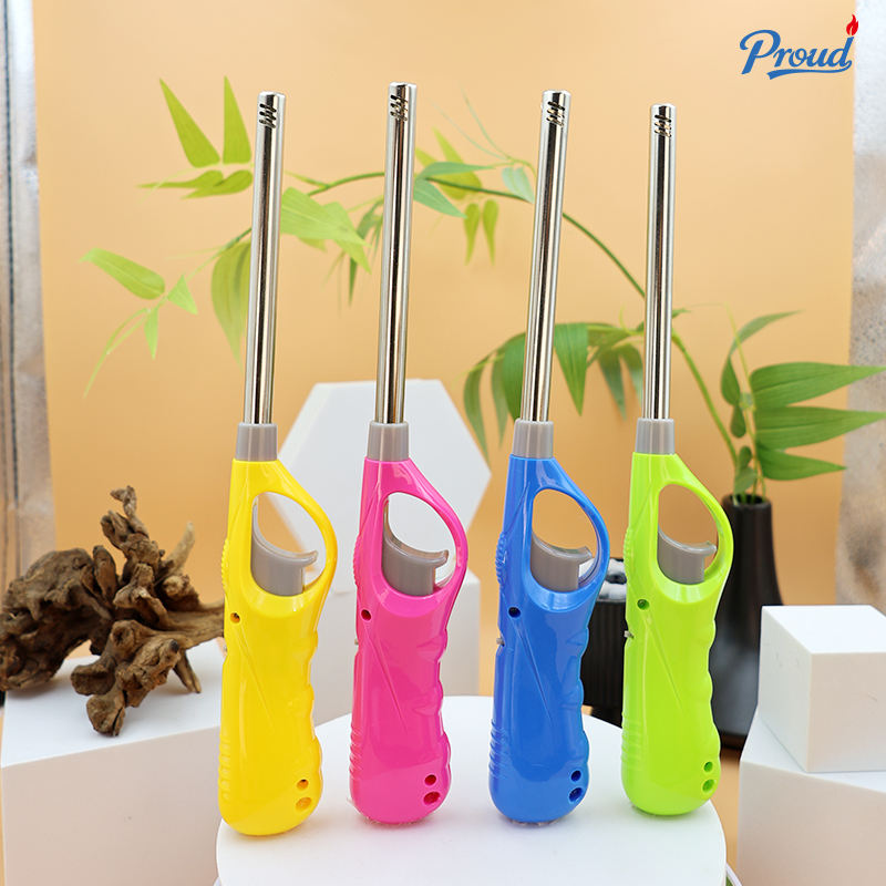 Briquet de cuisine au butane rechargeable, coupe-vent, allumage électrique, flamme réglable pour cuisinière à gaz, barbecue