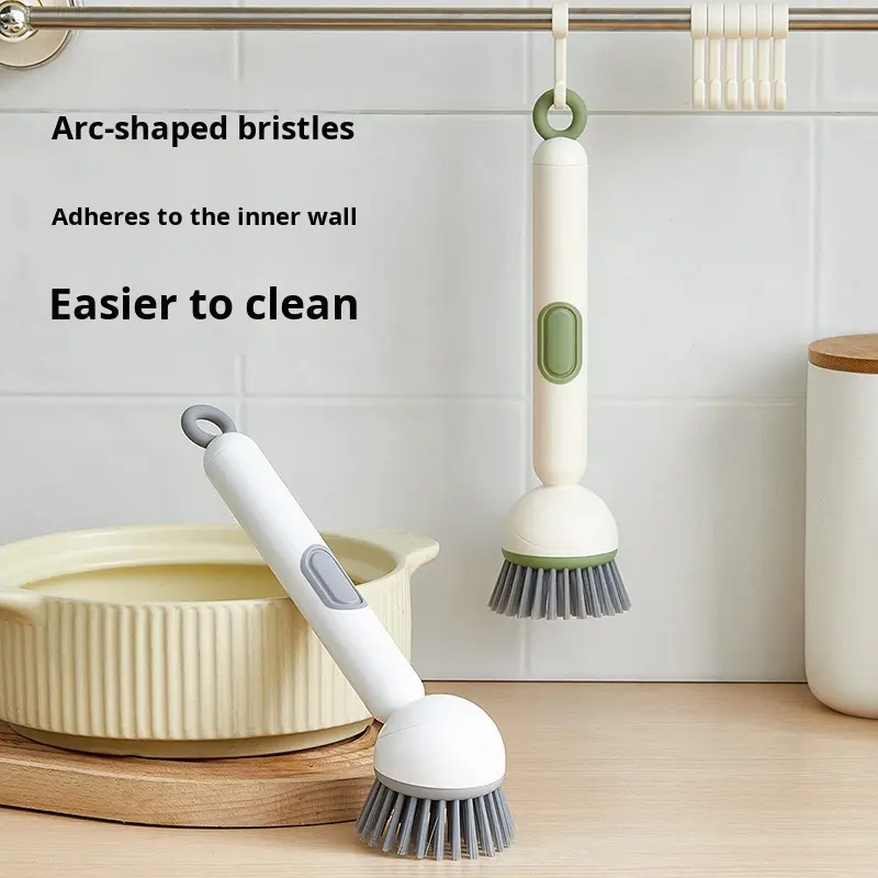 Brosse de nettoyage réglable en plastique à long manche pour cuisine avec fonction rotative liquide pour pot et bol multifonction