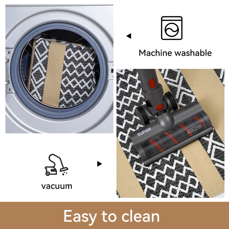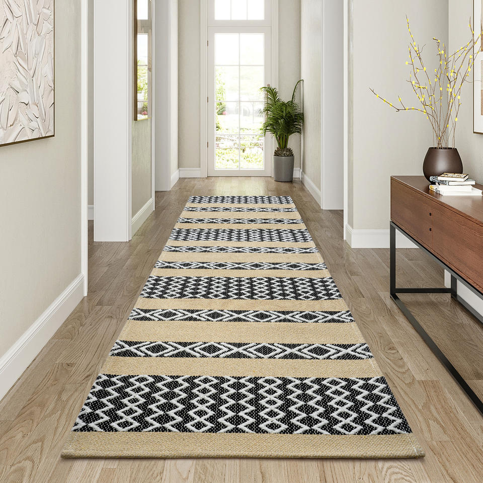 Tapis de cuisine à motif géométrique en polyester et coton, rectangulaire, antidérapant, marron, design losanges entrelacés