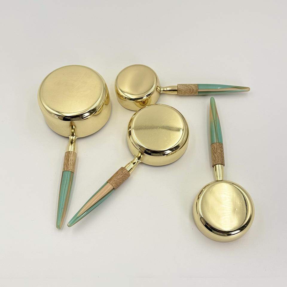 Outils de mesure de cuisine, tasses et cuillères doseuses en acier inoxydable, 4 pièces pour mesurer la poudre de café avec poignée en résine