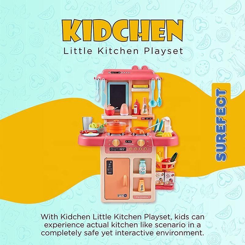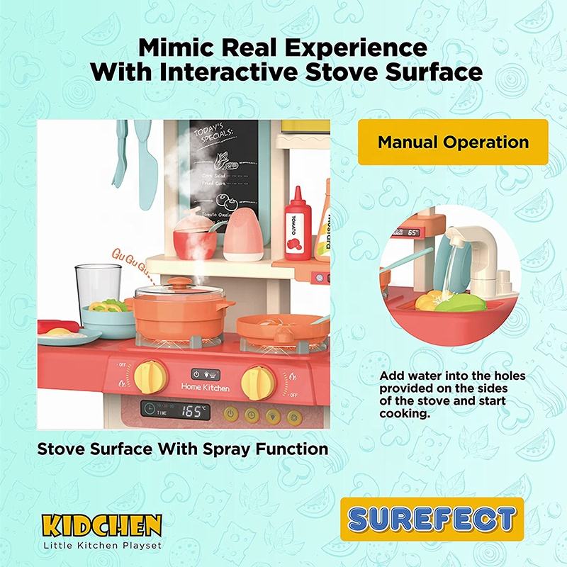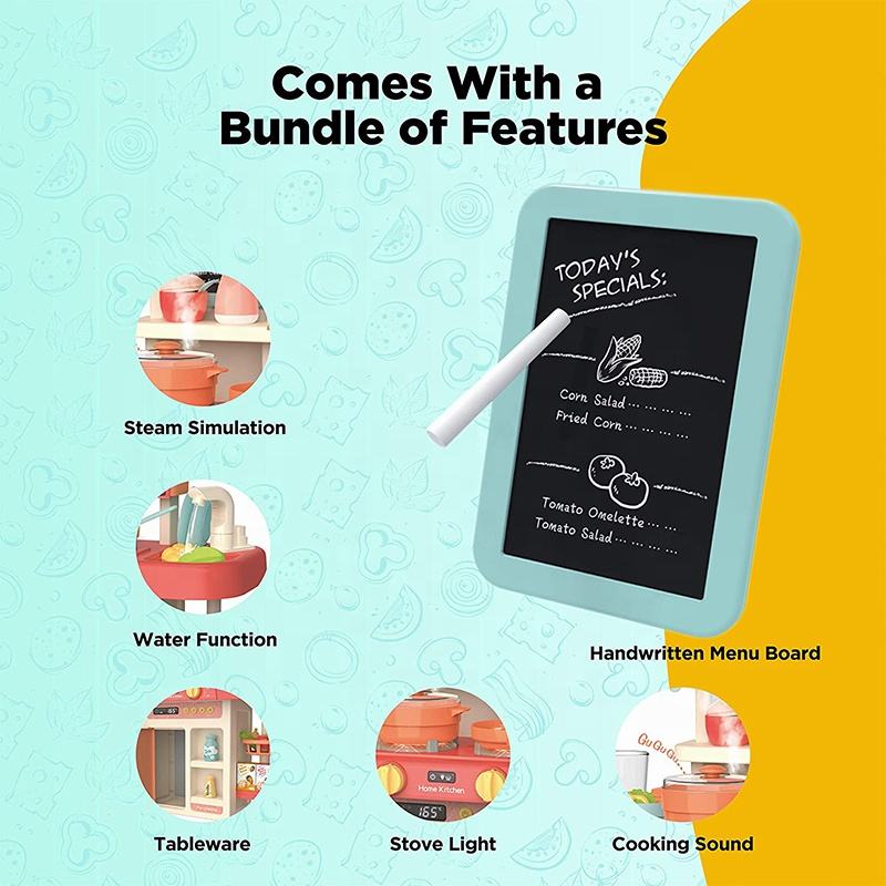 Ensemble de jeu de cuisine avec Simulation de vapeur sonore de lumière réaliste-jeux d'intérieur jouet de cuisine avec sortie d'eau pour enfants