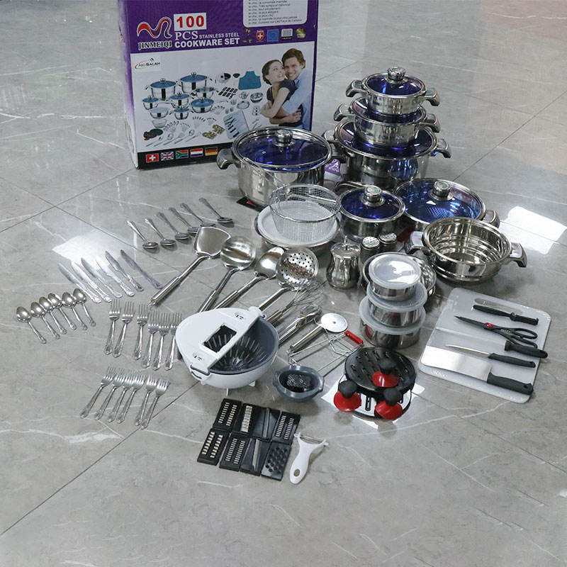 Pot à soupe et marmite personnalisés du fabricant, ensemble de 100 pièces en acier inoxydable avec couvercle en verre et thermomètre