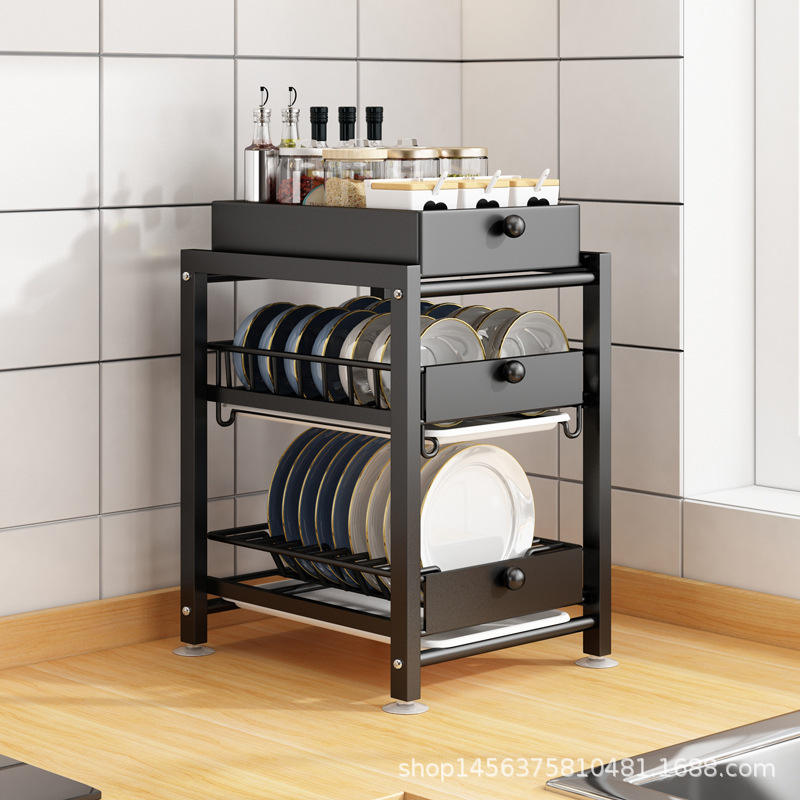 Égouttoir à vaisselle coulissant de cuisine avec tiroirs, étagère de rangement de comptoir, séchage rapide, organisateur polyvalent pour assiettes et bols, taille L