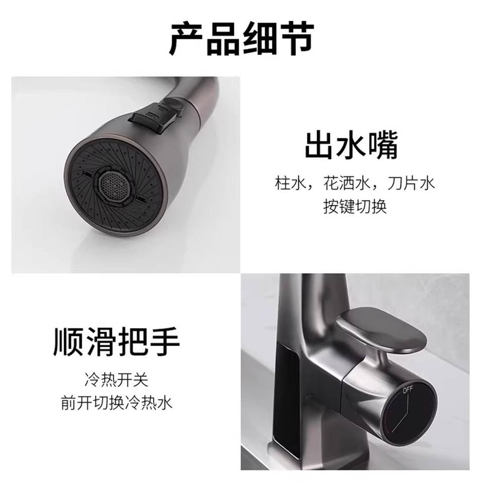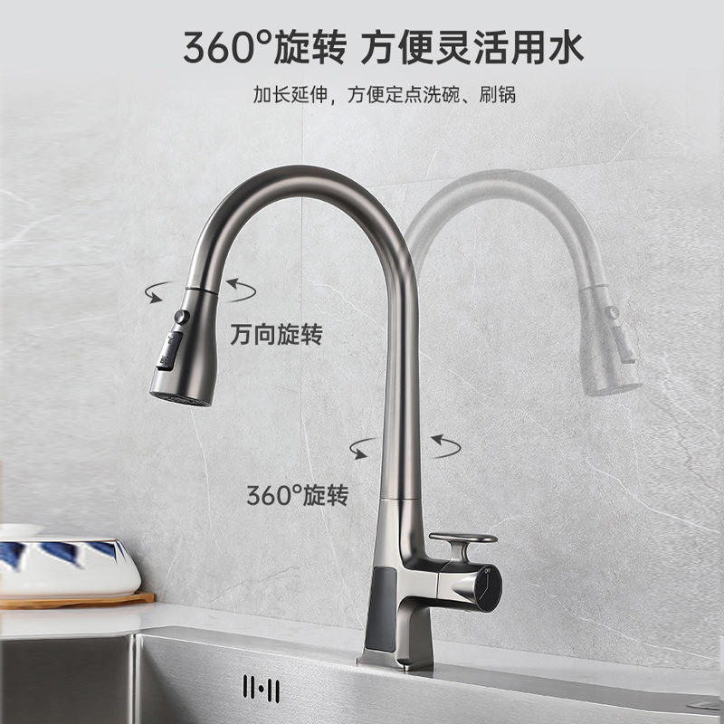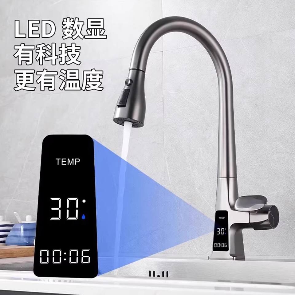 Robinet de cuisine extractible avec tuyau flexible de 60 cm, affichage numérique, moderne, monocommande, à poser sur comptoir, eau chaude et froide