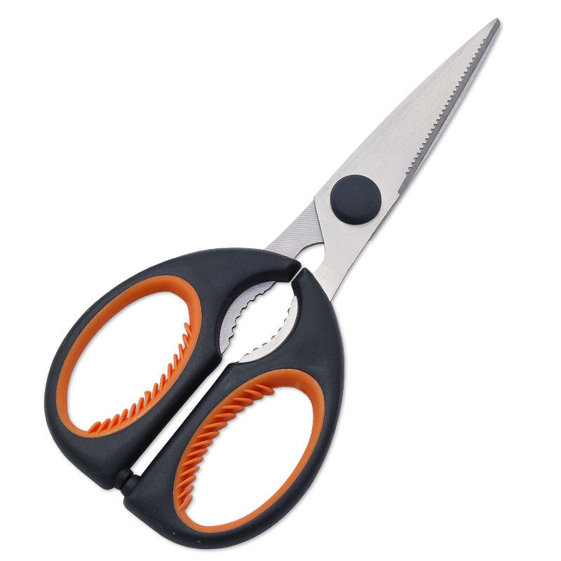 Kitchen Scissors Stainless Steel Straight Head For Home Use Orange Gray Handle