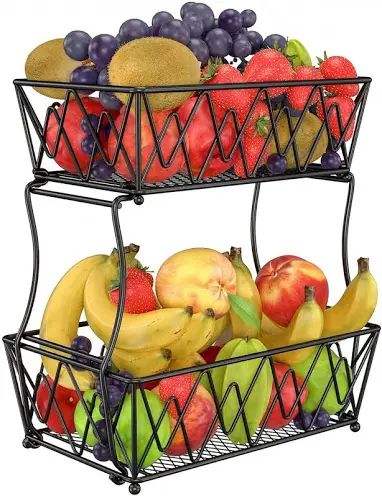 Étagère de rangement pour fruits et légumes, détachable, 2 niveaux, pour comptoir, panier à fruits