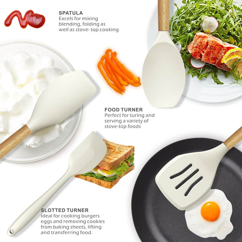 Ensemble d'ustensiles de cuisine en silicone, résistants au lave-vaisselle et au four, faciles à nettoyer, pour ustensiles de cuisine antiadhésifs, ensemble de spatules