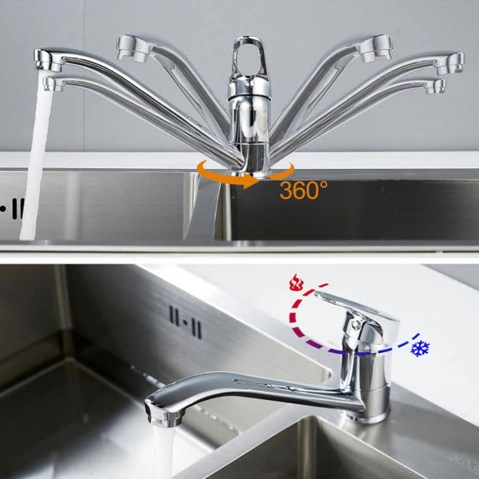 Mitigeur d'évier de cuisine Robinet monobloc à levier unique Corps en laiton massif avec finition chromée Bec pivotant à 360 ° pour la cuisine à domicile