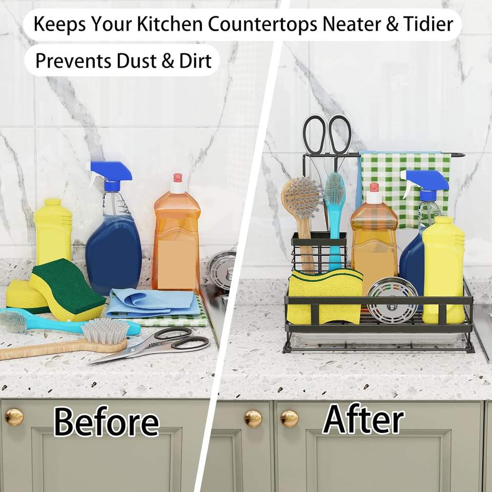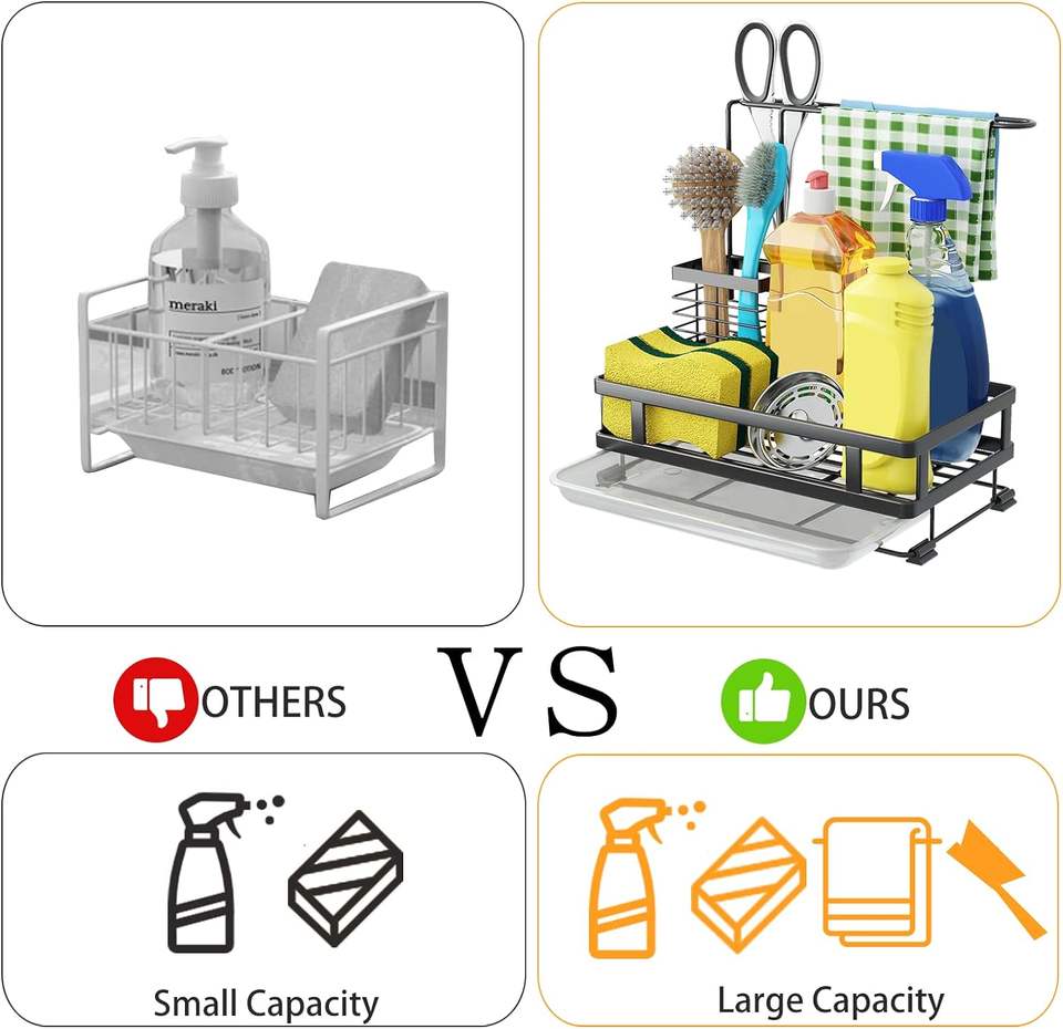 Organisateur d'évier de cuisine-Support d'éponge pour évier de cuisine, organisateur d'évier de cuisine antidérapant, acier inoxydable 304